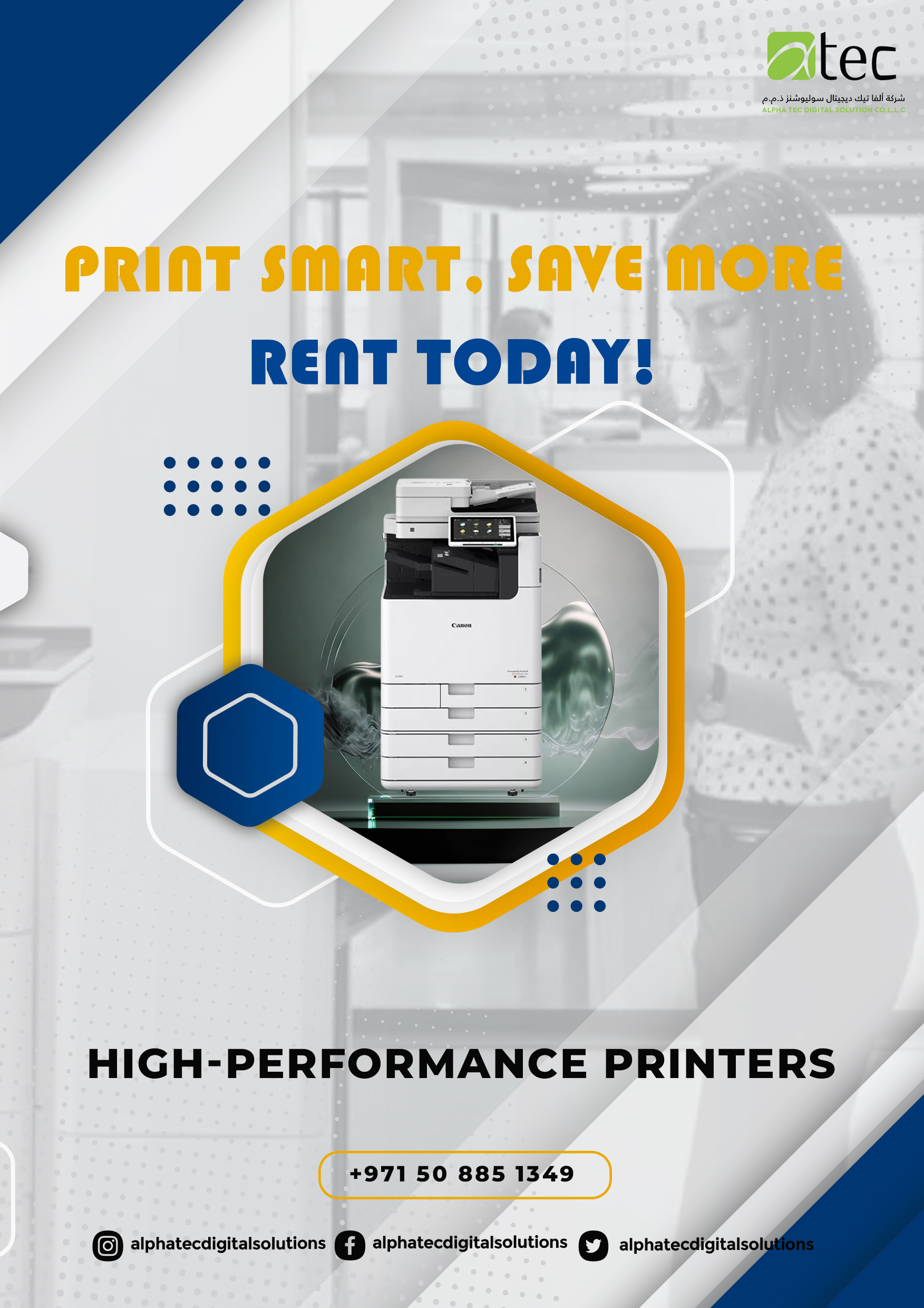 Looking for reliable printer rental in UAE? At Alpha Tech Digital Solution Co LLC ( www.alphatecuae.com ), we provide premium printer rental services designed to meet the needs of small offices, large corporations, schools, and government organizations. Our rental solutions give you access to the latest multifunctional printers without the high upfront costs of ownership. With UAE-wide coverage – including Dubai, Sharjah, Ajman, Abu Dhabi, Ras Al Khaimah, Fujairah, and Umm Al Quwain – we make it easy for your business to enjoy smooth, uninterrupted printing.WHY CHOOSE OUR PRINTER RENTAL SERVICES IN THE UAE?